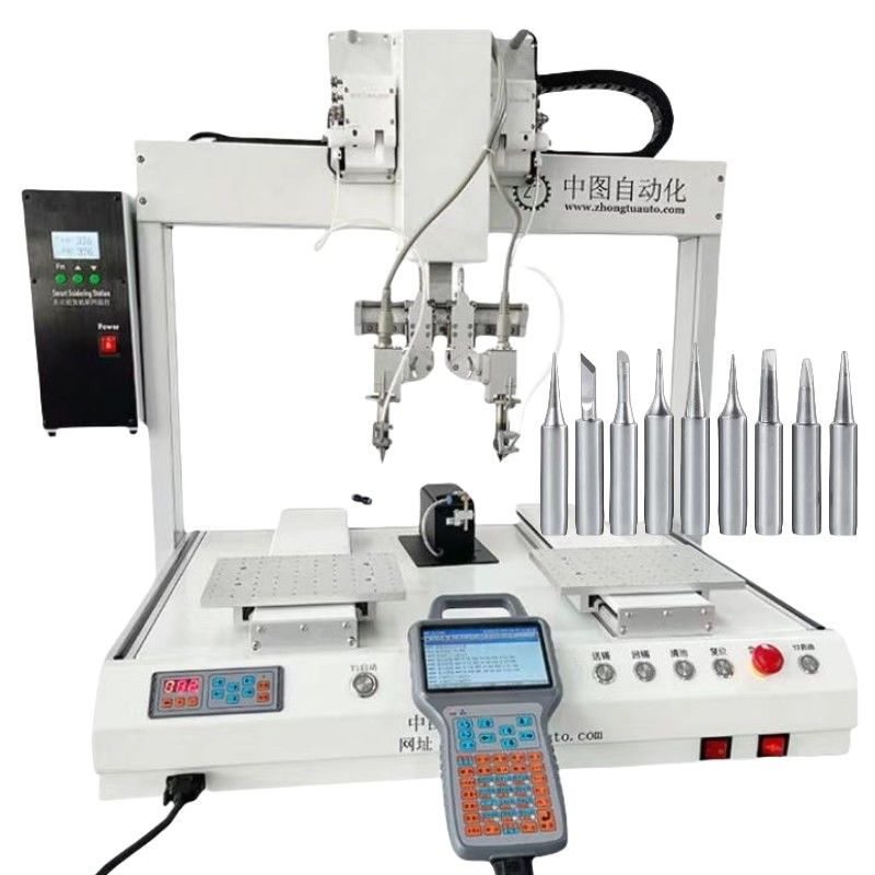 آلة اللحام التلقائية تتحكم بشكل رئيسي في حركة الجهاز من خلال البرنامج، بحيث يمكن لحام وفقا للمسار المحدد مسبقا والمعايير.آلية تغذية القصدير التلقائية في نظام اللحام سوف تنقل بدقة سلك اللحام إلى موقف اللحام وفقا للمعلمات المحددة، ونظام التحكم في درجة الحرارة يضمن أن يتم الحفاظ على رأس حديد اللحام في درجة حرارة مناسبة لضمان جودة وتأثير اللحام.